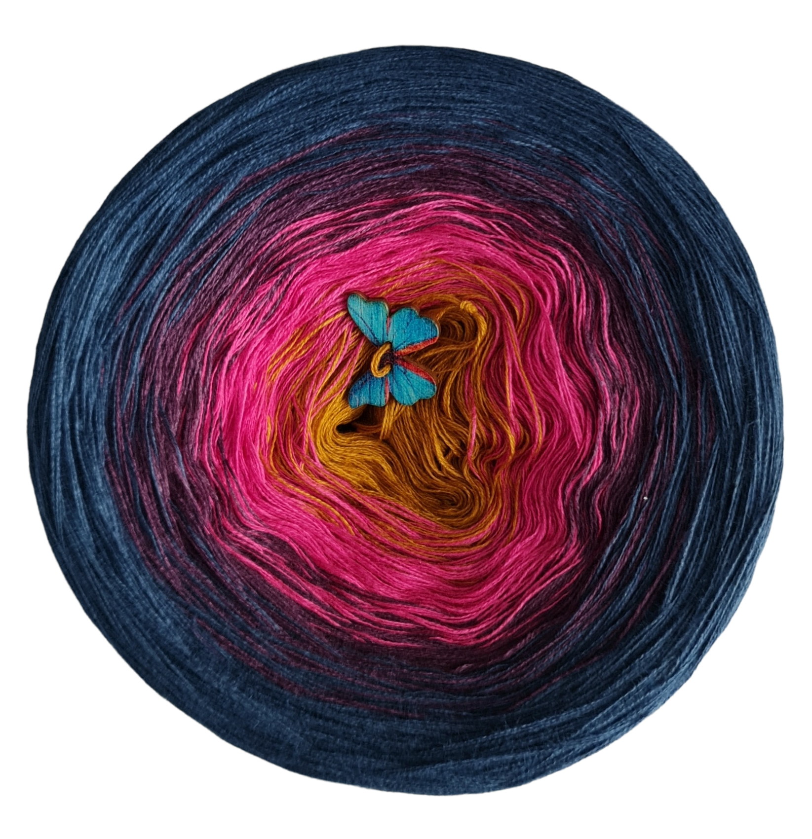 skład : bawełna/akryl 50%/50% Motek składa się z 3 lub 4 nitek , które nie są ze sobą skręcone , kolory zmieniają się nitka po nitce . Przejścia kolorów nie są równe , lecz są proporcjonalne ,co oznacza , że środkowego koloru jest najmniej a zewnętrznego najwięcej . Pozwala to na uzyskanie efektu równych pasów w chustach. Zalecane użycie motka@ombre – od środka . Zalecane szydełko 2-4mm Jakiej długości potrzebujesz ? 500m-mała chusta dla dziecka 1000m – średnia chusta , prosty wzór 1500 – duża chusta , prosty wzór 1800-2000m – chusta z dużą ilością reliefów . Staramy się aby zdjęcia odzwierciedlały jak najdokładniej rzeczywiste kolory przędzy jednak mogą one się w niewielkim stopniu różnić od rzeczywistości Zawieszka jest elementem dodatkowym , nie obowiązkowym . Staramy się aby utrzymać ciagłość kolorów lecz z powodu dostaw różnych partii towaru , odcienie mogą się nieznacznie różnić