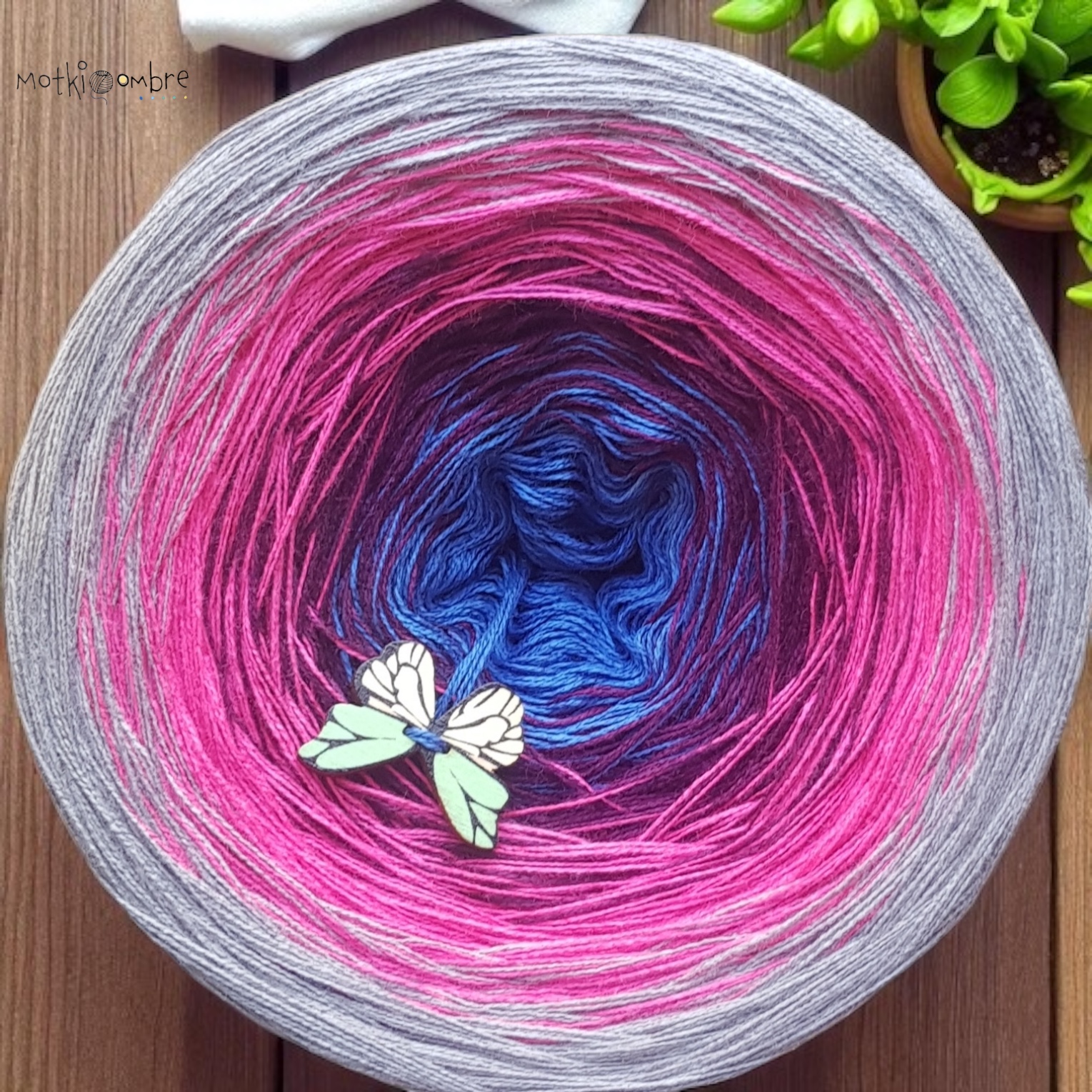 skład : bawełna/akryl 50%/50% Motek składa się z 3 lub 4 nitek , które nie są ze sobą skręcone , kolory zmieniają się nitka po nitce . Przejścia kolorów nie są równe , lecz są proporcjonalne ,co oznacza , że środkowego koloru jest najmniej a zewnętrznego najwięcej . Pozwala to na uzyskanie efektu równych pasów w chustach. Zalecane użycie motka@ombre – od środka . Zalecane szydełko 2-4mm Jakiej długości potrzebujesz ? 500m-mała chusta dla dziecka 1000m – średnia chusta , prosty wzór 1500 – duża chusta , prosty wzór 1800-2000m – chusta z dużą ilością reliefów . Staramy się aby zdjęcia odzwierciedlały jak najdokładniej rzeczywiste kolory przędzy jednak mogą one się w niewielkim stopniu różnić od rzeczywistości Zawieszka jest elementem dodatkowym , nie obowiązkowym . Staramy się aby utrzymać ciagłość kolorów lecz z powodu dostaw różnych partii towaru , odcienie mogą się nieznacznie różnić