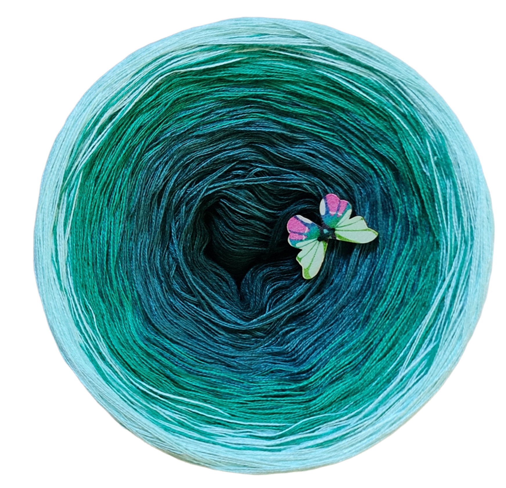 skład : bawełna/akryl 50%/50% Motek składa się z 3 lub 4 nitek , które nie są ze sobą skręcone , kolory zmieniają się nitka po nitce . Przejścia kolorów nie są równe , lecz są proporcjonalne ,co oznacza , że środkowego koloru jest najmniej a zewnętrznego najwięcej . Pozwala to na uzyskanie efektu równych pasów w chustach. Zalecane użycie motka@ombre – od środka . Zalecane szydełko 2-4mm Jakiej długości potrzebujesz ? 500m-mała chusta dla dziecka 1000m – średnia chusta , prosty wzór 1500 – duża chusta , prosty wzór 1800-2000m – chusta z dużą ilością reliefów . Staramy się aby zdjęcia odzwierciedlały jak najdokładniej rzeczywiste kolory przędzy jednak mogą one się w niewielkim stopniu różnić od rzeczywistości Zawieszka jest elementem dodatkowym , nie obowiązkowym . Staramy się aby utrzymać ciagłość kolorów lecz z powodu dostaw różnych partii towaru , odcienie mogą się nieznacznie różnić
