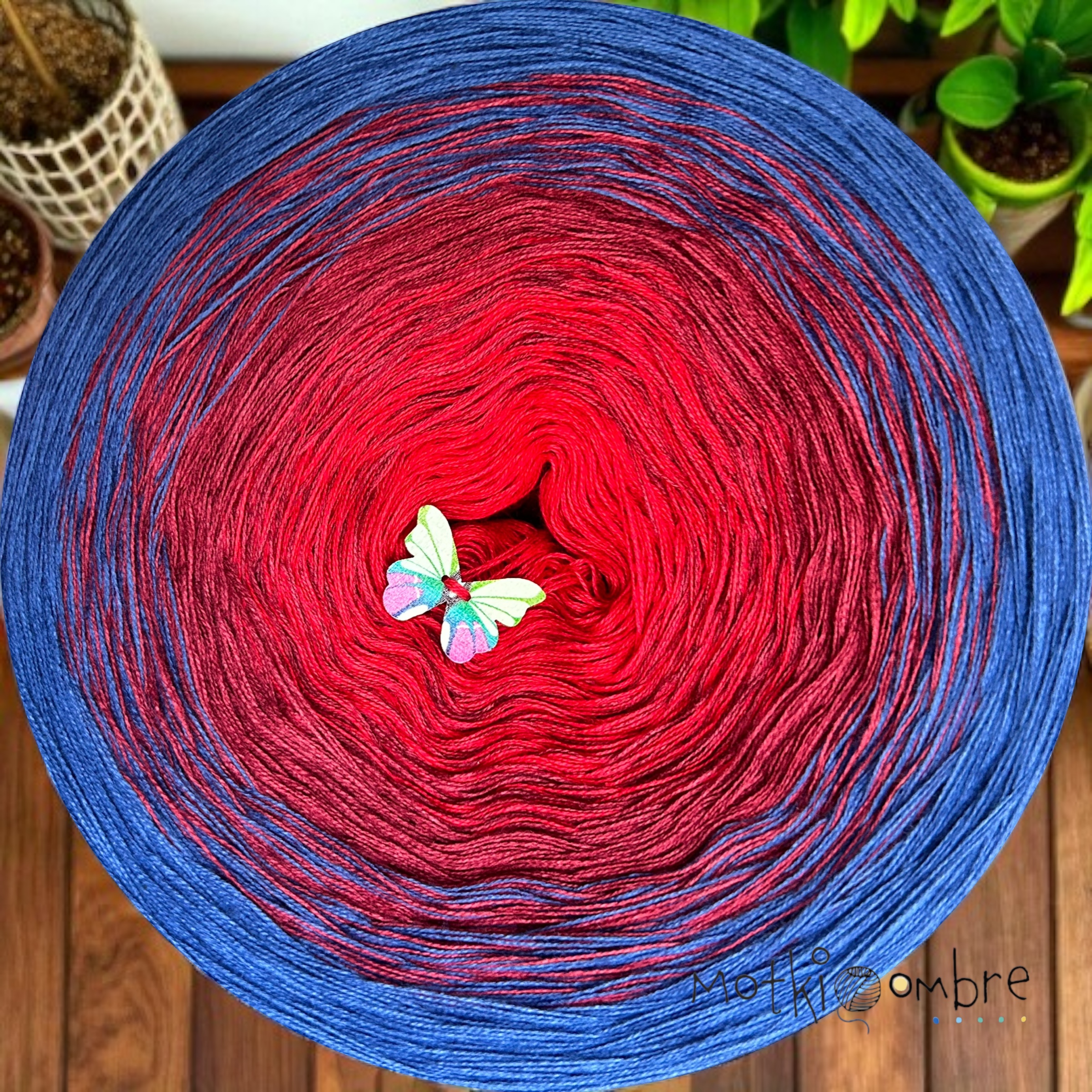 skład : bawełna/akryl 50%/50% Motek składa się z 3 lub 4 nitek , które nie są ze sobą skręcone , kolory zmieniają się nitka po nitce . Przejścia kolorów nie są równe , lecz są proporcjonalne ,co oznacza , że środkowego koloru jest najmniej a zewnętrznego najwięcej . Pozwala to na uzyskanie efektu równych pasów w chustach. Zalecane użycie motka@ombre – od środka . Zalecane szydełko 2-4mm Jakiej długości potrzebujesz ? 500m-mała chusta dla dziecka 1000m – średnia chusta , prosty wzór 1500 – duża chusta , prosty wzór 1800-2000m – chusta z dużą ilością reliefów . Staramy się aby zdjęcia odzwierciedlały jak najdokładniej rzeczywiste kolory przędzy jednak mogą one się w niewielkim stopniu różnić od rzeczywistości Zawieszka jest elementem dodatkowym , nie obowiązkowym . Staramy się aby utrzymać ciagłość kolorów lecz z powodu dostaw różnych partii towaru , odcienie mogą się nieznacznie różnić