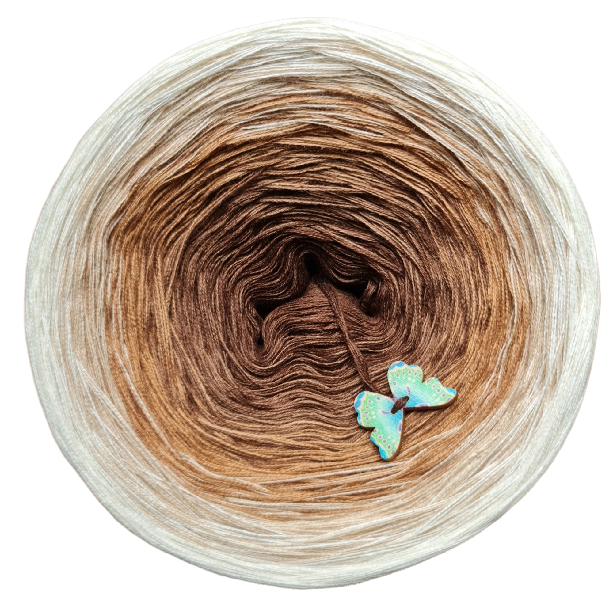 skład : bawełna/akryl 50%/50% Motek składa się z 3 lub 4 nitek , które nie są ze sobą skręcone , kolory zmieniają się nitka po nitce . Przejścia kolorów nie są równe , lecz są proporcjonalne ,co oznacza , że środkowego koloru jest najmniej a zewnętrznego najwięcej . Pozwala to na uzyskanie efektu równych pasów w chustach. Zalecane użycie motka@ombre – od środka . Zalecane szydełko 2-4mm Jakiej długości potrzebujesz ? 500m-mała chusta dla dziecka 1000m – średnia chusta , prosty wzór 1500 – duża chusta , prosty wzór 1800-2000m – chusta z dużą ilością reliefów . Staramy się aby zdjęcia odzwierciedlały jak najdokładniej rzeczywiste kolory przędzy jednak mogą one się w niewielkim stopniu różnić od rzeczywistości Zawieszka jest elementem dodatkowym , nie obowiązkowym . Staramy się aby utrzymać ciagłość kolorów lecz z powodu dostaw różnych partii towaru , odcienie mogą się nieznacznie różnić