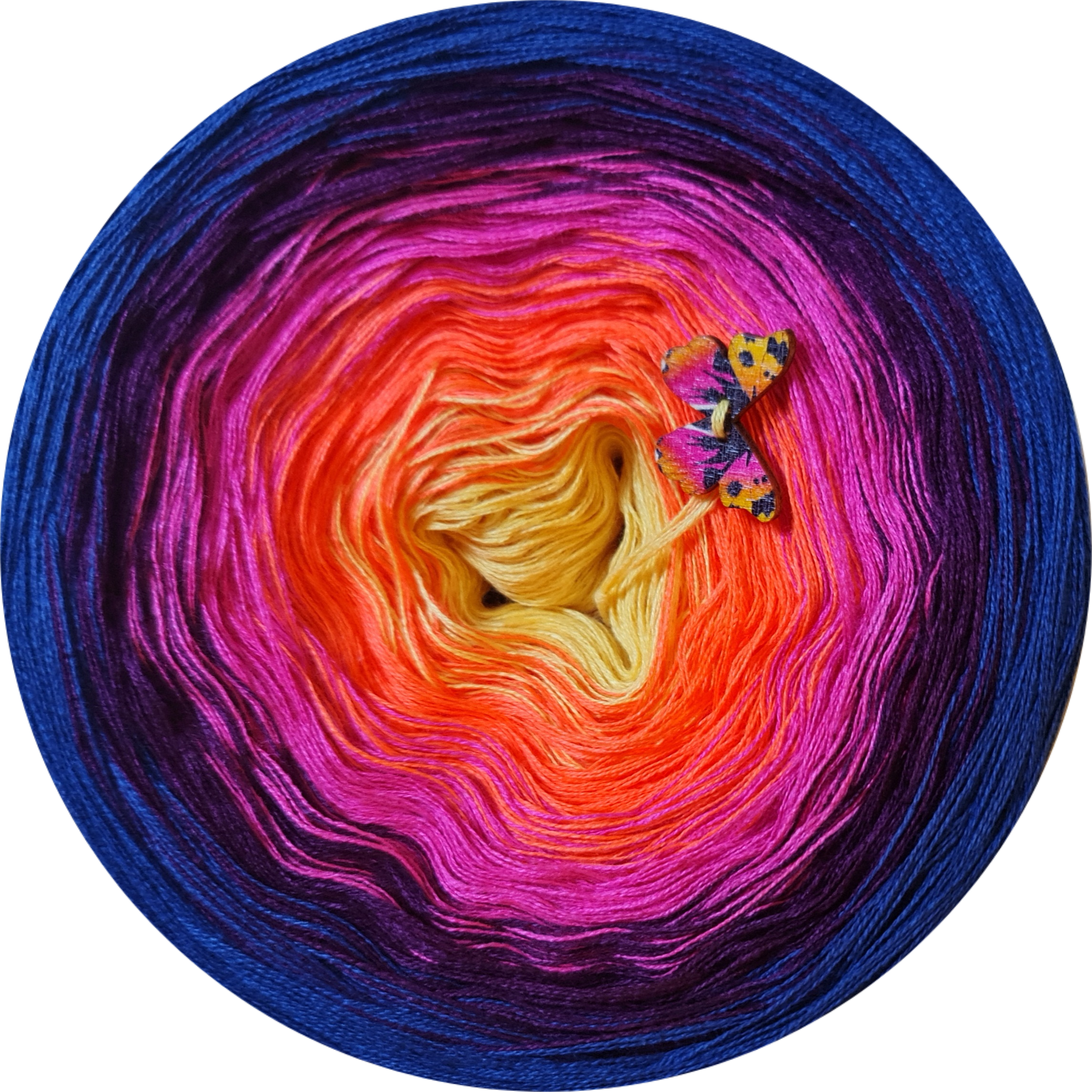 skład : bawełna/akryl 50%/50% Motek składa się z 3 lub 4 nitek , które nie są ze sobą skręcone , kolory zmieniają się nitka po nitce . Przejścia kolorów nie są równe , lecz są proporcjonalne ,co oznacza , że środkowego koloru jest najmniej a zewnętrznego najwięcej . Pozwala to na uzyskanie efektu równych pasów w chustach. Zalecane użycie motka@ombre – od środka . Zalecane szydełko 2-4mm Jakiej długości potrzebujesz ? 500m-mała chusta dla dziecka 1000m – średnia chusta , prosty wzór 1500 – duża chusta , prosty wzór 1800-2000m – chusta z dużą ilością reliefów . Staramy się aby zdjęcia odzwierciedlały jak najdokładniej rzeczywiste kolory przędzy jednak mogą one się w niewielkim stopniu różnić od rzeczywistości Zawieszka jest elementem dodatkowym , nie obowiązkowym . Staramy się aby utrzymać ciagłość kolorów lecz z powodu dostaw różnych partii towaru , odcienie mogą się nieznacznie różnić