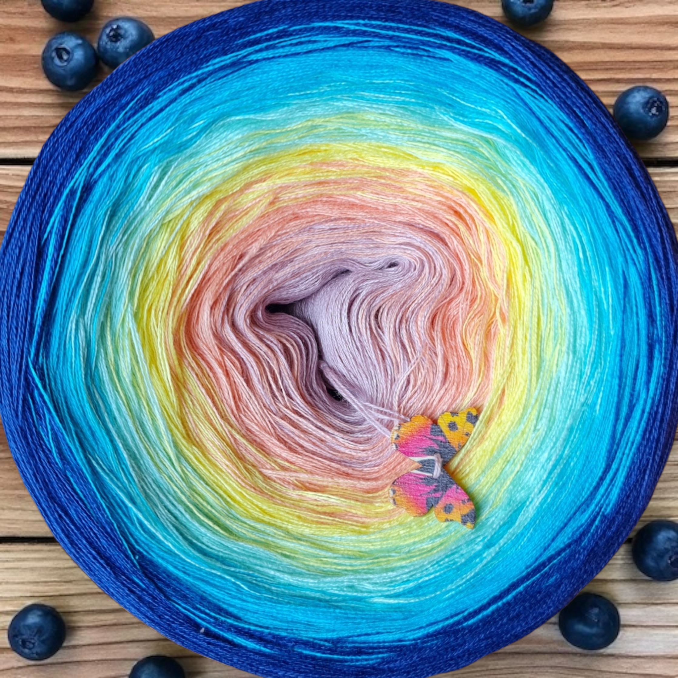skład : bawełna/akryl 50%/50% Motek składa się z 3 lub 4 nitek , które nie są ze sobą skręcone , kolory zmieniają się nitka po nitce . Przejścia kolorów nie są równe , lecz są proporcjonalne ,co oznacza , że środkowego koloru jest najmniej a zewnętrznego najwięcej . Pozwala to na uzyskanie efektu równych pasów w chustach. Zalecane użycie motka@ombre – od środka . Zalecane szydełko 2-4mm Jakiej długości potrzebujesz ? 500m-mała chusta dla dziecka 1000m – średnia chusta , prosty wzór 1500 – duża chusta , prosty wzór 1800-2000m – chusta z dużą ilością reliefów . Staramy się aby zdjęcia odzwierciedlały jak najdokładniej rzeczywiste kolory przędzy jednak mogą one się w niewielkim stopniu różnić od rzeczywistości Zawieszka jest elementem dodatkowym , nie obowiązkowym . Staramy się aby utrzymać ciagłość kolorów lecz z powodu dostaw różnych partii towaru , odcienie mogą się nieznacznie różnić