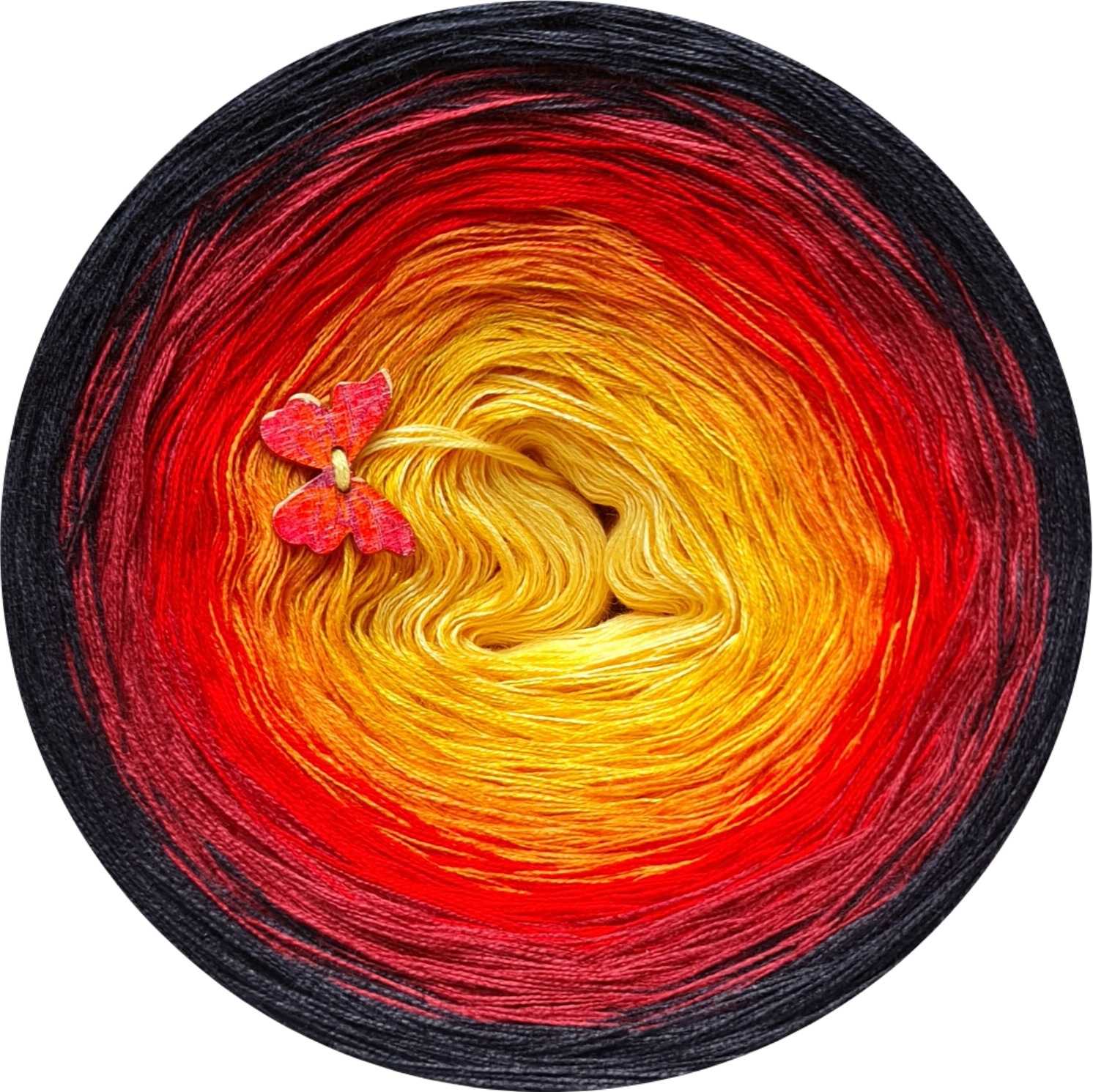 skład : bawełna/akryl 50%/50% Motek składa się z 3 lub 4 nitek , które nie są ze sobą skręcone , kolory zmieniają się nitka po nitce . Przejścia kolorów nie są równe , lecz są proporcjonalne ,co oznacza , że środkowego koloru jest najmniej a zewnętrznego najwięcej . Pozwala to na uzyskanie efektu równych pasów w chustach. Zalecane użycie motka@ombre – od środka . Zalecane szydełko 2-4mm Jakiej długości potrzebujesz ? 500m-mała chusta dla dziecka 1000m – średnia chusta , prosty wzór 1500 – duża chusta , prosty wzór 1800-2000m – chusta z dużą ilością reliefów . Staramy się aby zdjęcia odzwierciedlały jak najdokładniej rzeczywiste kolory przędzy jednak mogą one się w niewielkim stopniu różnić od rzeczywistości Zawieszka jest elementem dodatkowym , nie obowiązkowym . Staramy się aby utrzymać ciagłość kolorów lecz z powodu dostaw różnych partii towaru , odcienie mogą się nieznacznie różnić