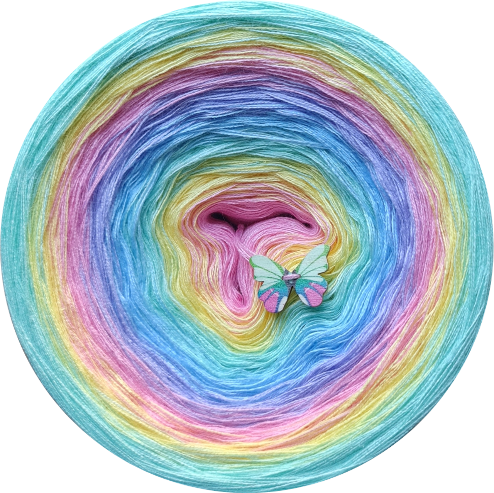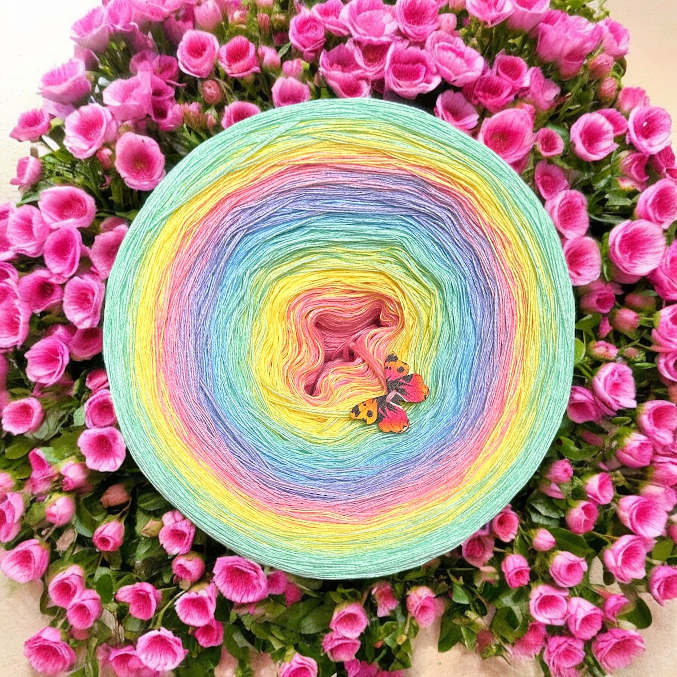 skład : bawełna/akryl 50%/50% Motek składa się z 3 lub 4 nitek , które nie są ze sobą skręcone , kolory zmieniają się nitka po nitce . Przejścia kolorów nie są równe , lecz są proporcjonalne ,co oznacza , że środkowego koloru jest najmniej a zewnętrznego najwięcej . Pozwala to na uzyskanie efektu równych pasów w chustach. Zalecane użycie motka@ombre – od środka . Zalecane szydełko 2-4mm Jakiej długości potrzebujesz ? 500m-mała chusta dla dziecka 1000m – średnia chusta , prosty wzór 1500 – duża chusta , prosty wzór 1800-2000m – chusta z dużą ilością reliefów . Staramy się aby zdjęcia odzwierciedlały jak najdokładniej rzeczywiste kolory przędzy jednak mogą one się w niewielkim stopniu różnić od rzeczywistości Zawieszka jest elementem dodatkowym , nie obowiązkowym . Staramy się aby utrzymać ciagłość kolorów lecz z powodu dostaw różnych partii towaru , odcienie mogą się nieznacznie różnić