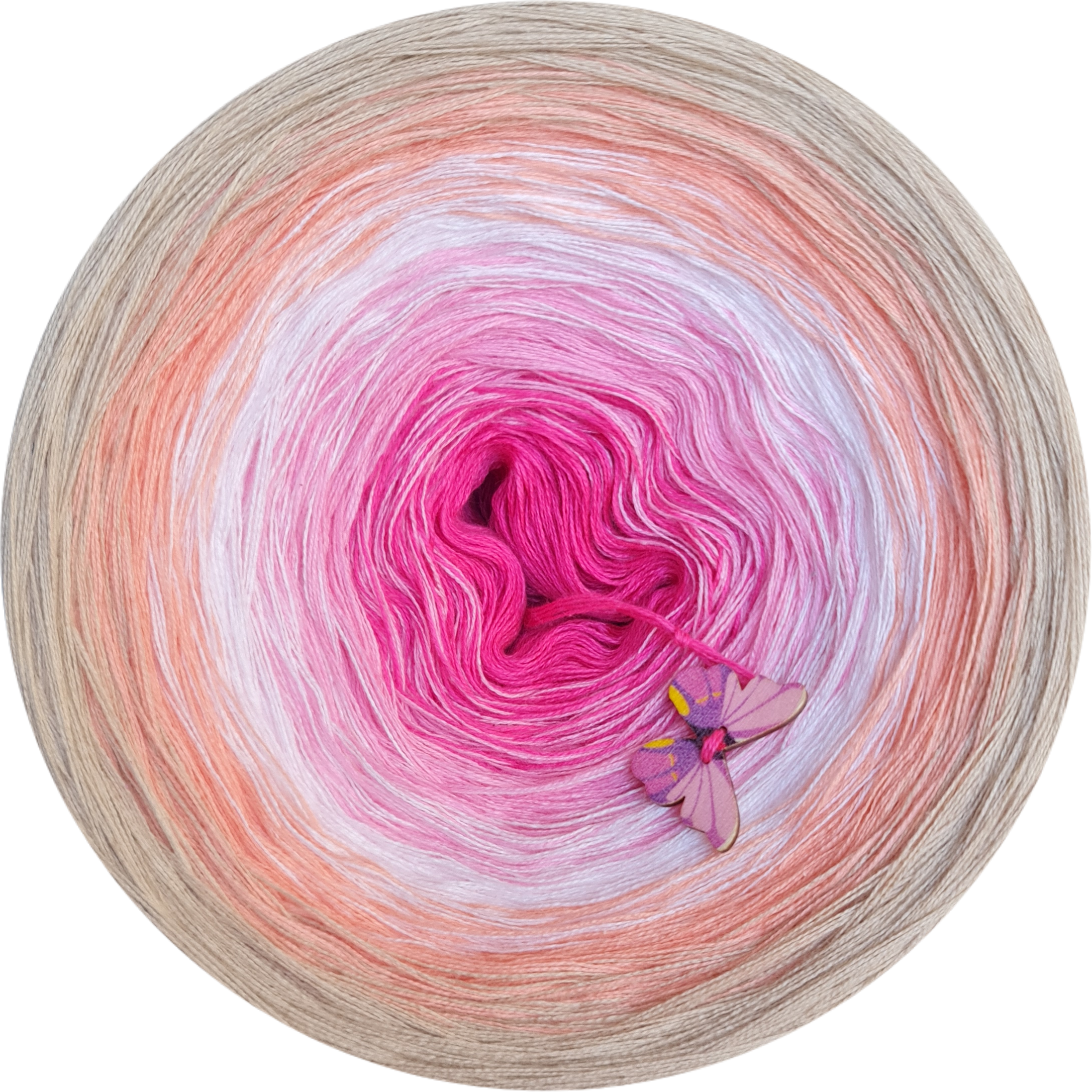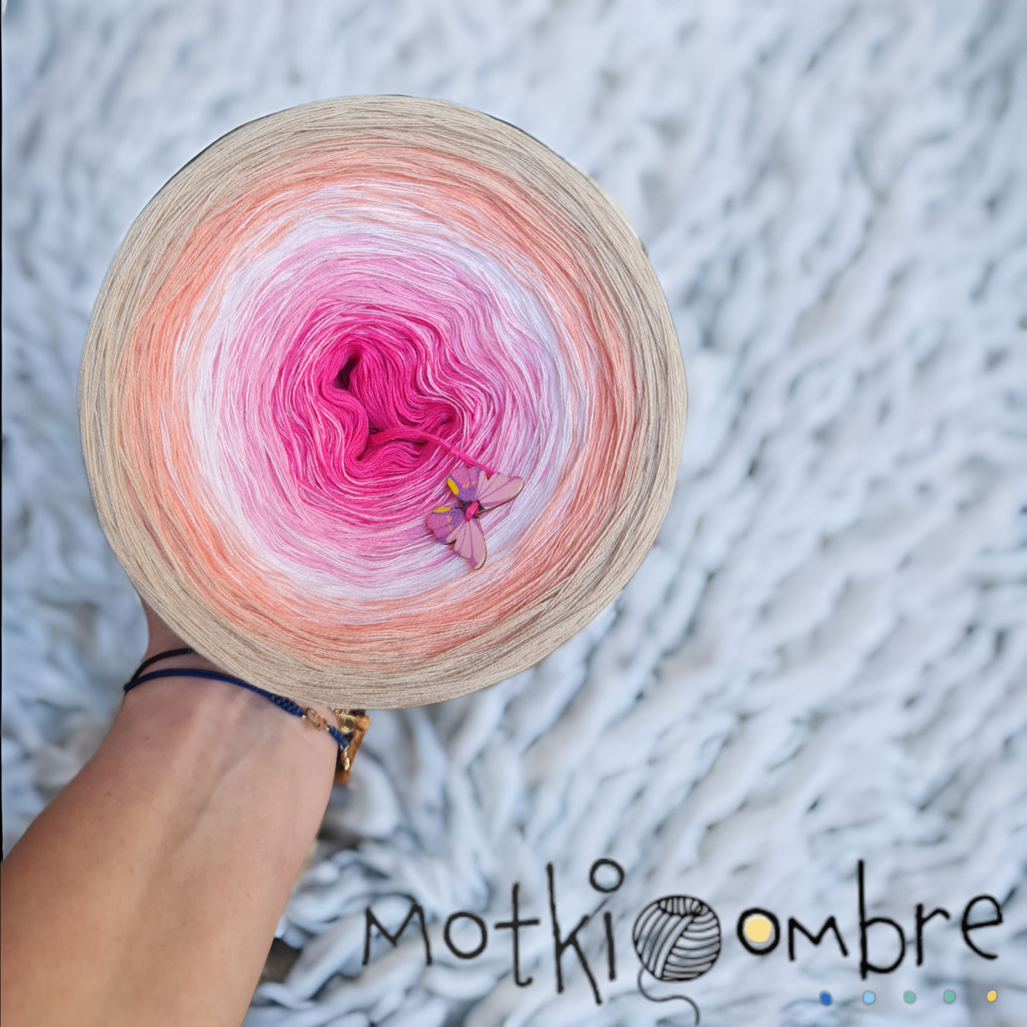 skład : bawełna/akryl 50%/50% Motek składa się z 3 lub 4 nitek , które nie są ze sobą skręcone , kolory zmieniają się nitka po nitce . Przejścia kolorów nie są równe , lecz są proporcjonalne ,co oznacza , że środkowego koloru jest najmniej a zewnętrznego najwięcej . Pozwala to na uzyskanie efektu równych pasów w chustach. Zalecane użycie motka@ombre – od środka . Zalecane szydełko 2-4mm Jakiej długości potrzebujesz ? 500m-mała chusta dla dziecka 1000m – średnia chusta , prosty wzór 1 500 – duża chusta , prosty wzó 1800-2000m – chusta z dużą ilością reliefów . Staramy się aby zdjęcia odzwierciedlały jak najdokładniej rzeczywiste kolory przędzy jednak mogą one się w niewielkim stopniu różnić od rzeczywistości Zawieszka jest elementem dodatkowym , nie obowiązkowym . Staramy się aby utrzymać ciagłość kolorów lecz z powodu dostaw różnych partii towaru , odcienie mogą się nieznacznie różnić