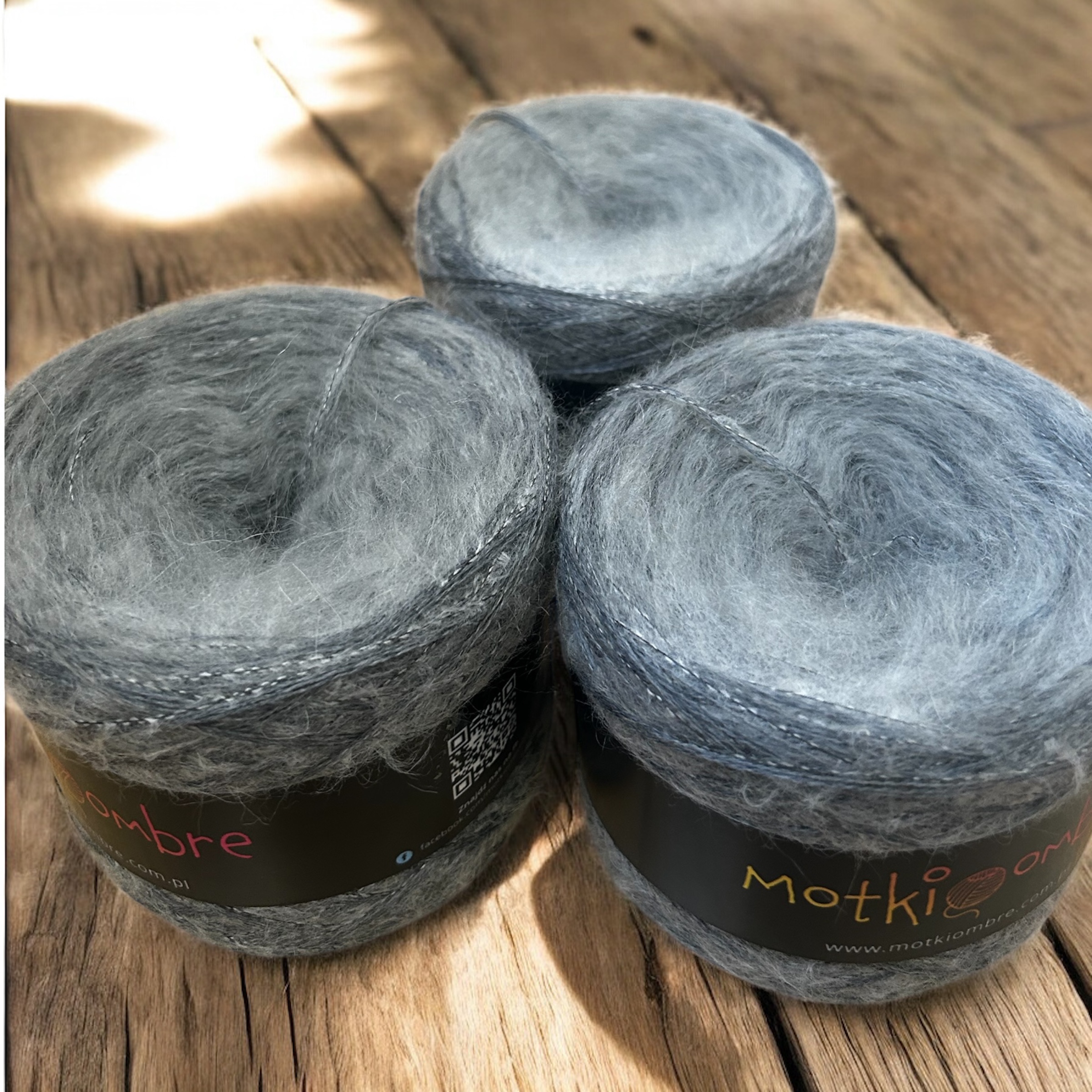 1 nitka z moherem (30%moher,30%akryl 40% poliamid )
